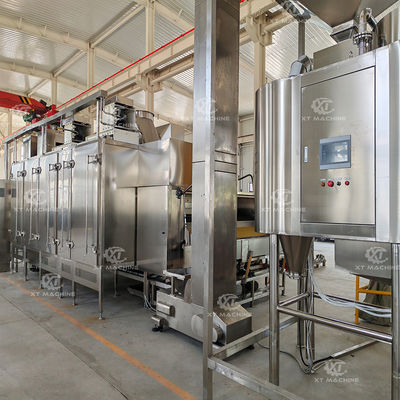 2. Efficiënte en geautomatiseerde werking: De machine is volledig automatisch en wordt bestuurd door een PLC-systeem, wat de behoefte aan geschoolde operators vermindert, fouten minimaliseert en consistente resultaten garandeert. Het blancheringsproces wordt voltooid met één klik en de rode huid van de pinda wordt binnen 10 seconden volledig weggeblazen.