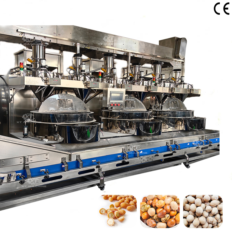 Onze XT-machines zijn ideaal voor het paneren van pinda's, noten en peulvruchten. De keuze van paneer soorten, waaronder zetmeel, bloem, suiker of vloeistof, maakt een breed scala aan toepassingen mogelijk. Deze machine is ideaal voor elke voedingsindustrie of verwerkingsfabriek, vooral voor het verwerken van pinda's, amandelen of cashewnoten.