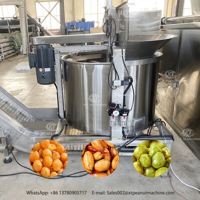 Professionele voedsel fritmachine ontworpen voor efficiënte batchverwerking van pinda's, frietjes en diverse voedingsproducten met precieze temperatuurregeling en geautomatiseerde werking.