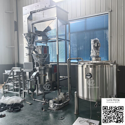 Industriële slijpmachine met een hoge capaciteit voor de productie van notenboter, tomatensaus en koffiebonen met geavanceerde slijptechnologie.