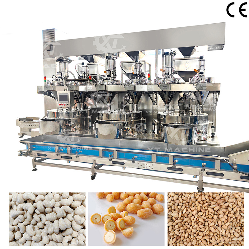 Volautomatische Grote Capaciteit Drie-stations Coatingmachine Pinda Coatingmachine met Paprika Voor Noten en Bonen Coating